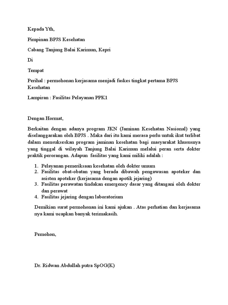 Contoh Surat Permohonan Kerjasama Dengan Bpjs Kesehatan